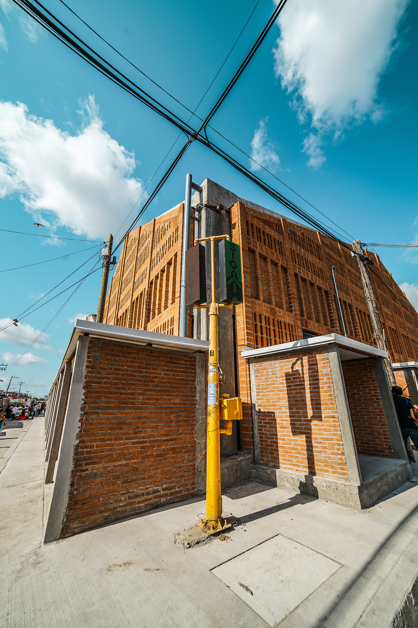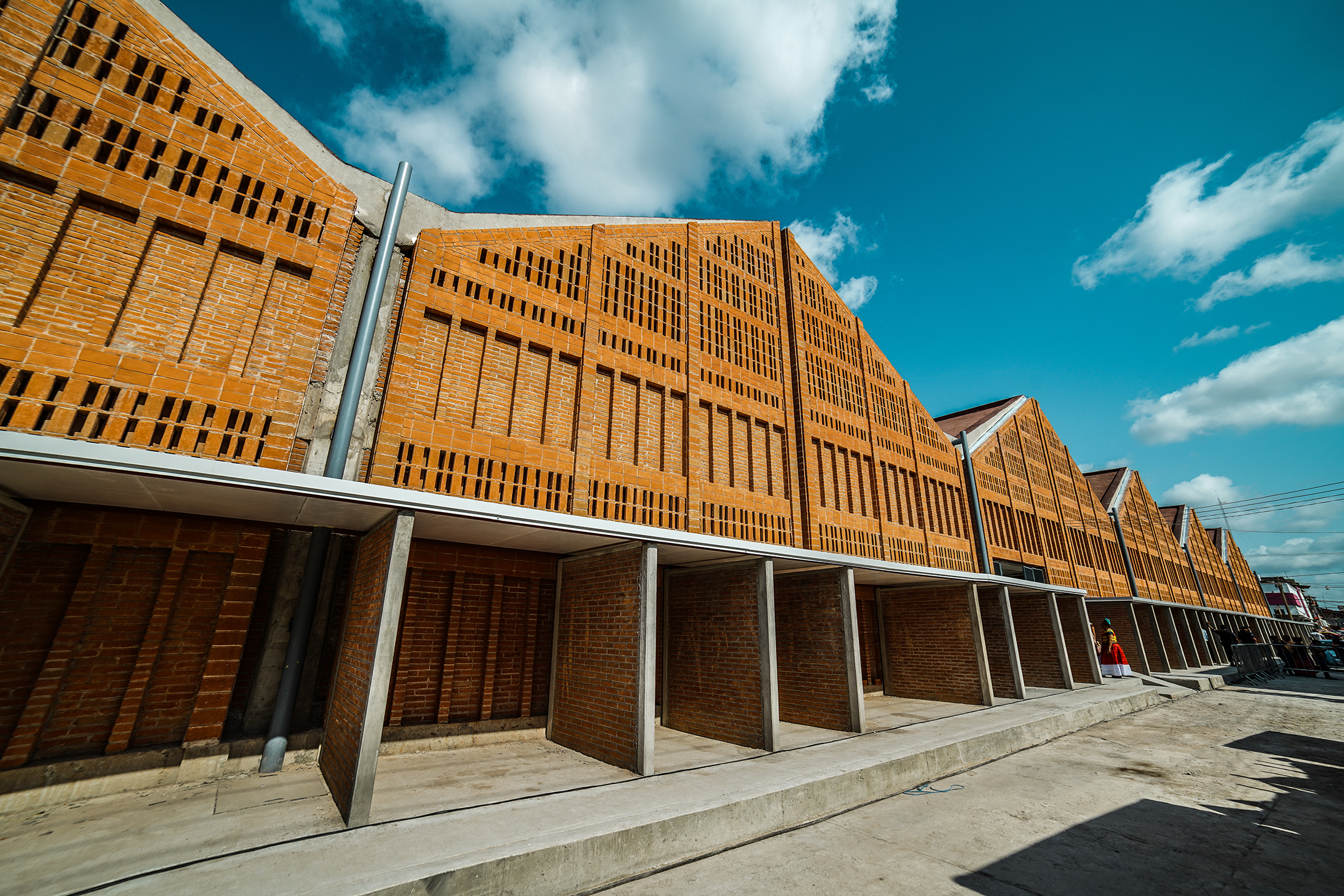 La fachada consta de celosía, un material que aporta una arquitectura tradicional a la zona; permitiendo una buena iluminación y ventilación al mercado. Pronto la edificación forma parte de un nuevo símbolo urbano.